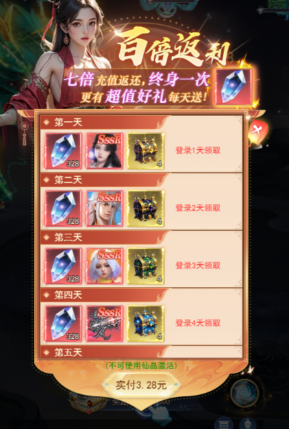 3、登錄領(lǐng)好禮,百萬元寶,珍貴幻化統(tǒng)統(tǒng)免費(fèi)領(lǐng)。