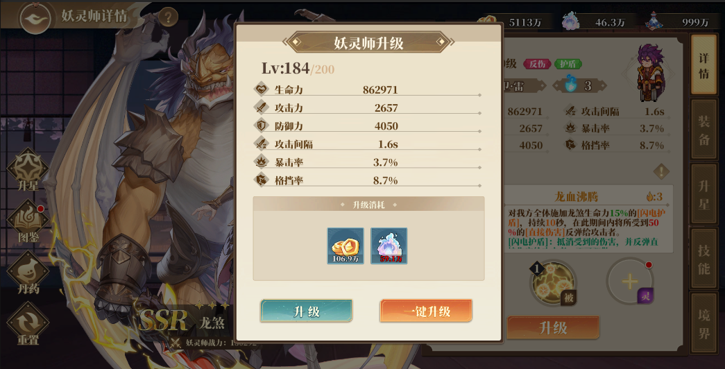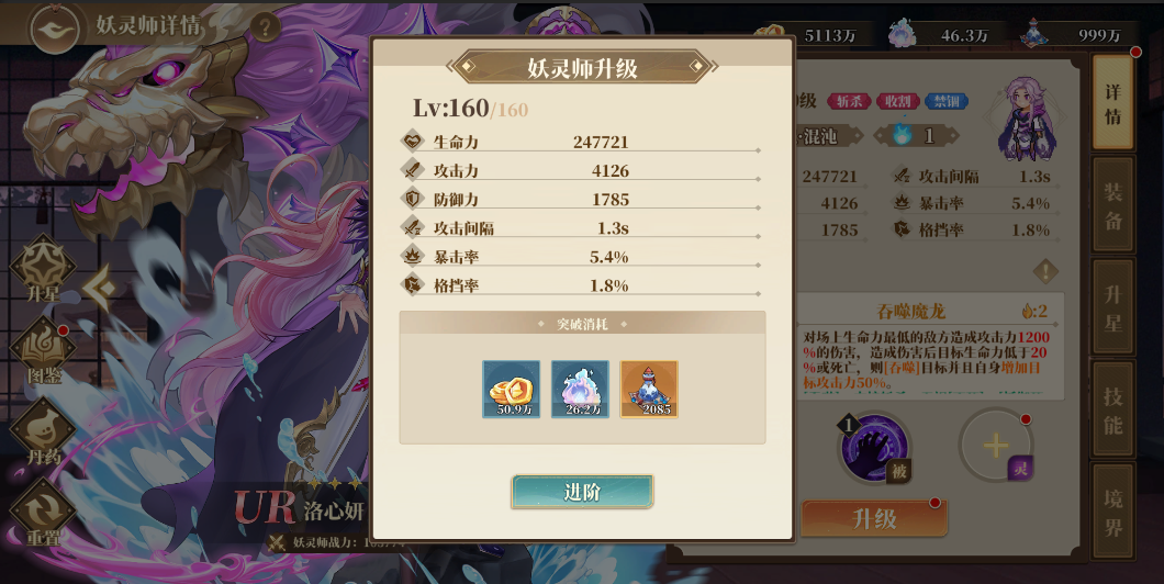 妖靈師可以通過消耗升級材料(妖晶幣、龍元靈液)提升等級,而升級可以提升面板屬性,當(dāng)達(dá)到等級上限時可以通過消耗妖晶幣、龍元靈液和九轉(zhuǎn)丹進(jìn)階等級上限。不過前期資源有限,還是盡量避免將養(yǎng)成材料分散給太多角色,練好一隊主力隊伍能過主線才是最重要的。?