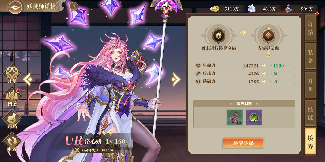 玩家可以通過合理利用資源對重要的角色進(jìn)行境界升級,當(dāng)然資源足夠的情況下可以隨意升級自己想升級的角色。