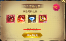1、搶購贈(zèng)送的雙倍藥水可以選擇在闖關(guān)過程中使用,這個(gè)藥水會(huì)對(duì)怪物的經(jīng)驗(yàn)有加成